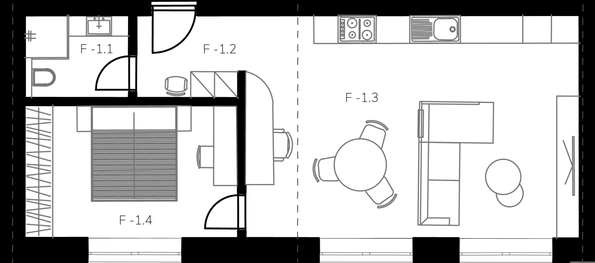 F-1.3 Obývacia izba s kuchyňou 33.20 m²